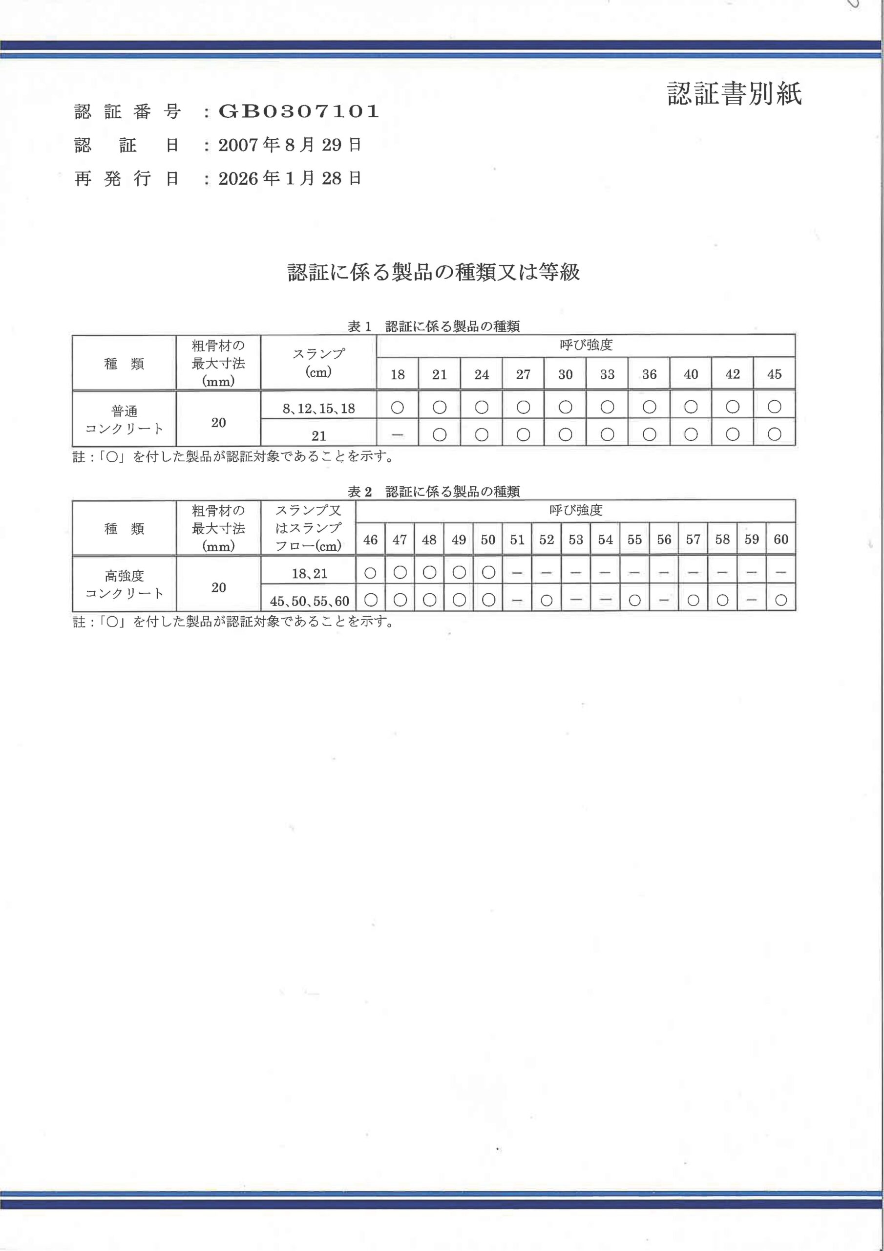 弊社は令和6年3月に、すでに国土交通大臣より「高強度コンクリート」の認定工場としての認定を受けております。